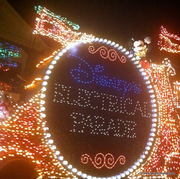 The real supercalifragilisticexpialidociousness takes place at night however. Tinkerbell leads the way in the Main Street Electrical Parade. Over half a million lights are in this parade and many characters as well. Snow White and the Seven Dwarfs, Alice in Wonderland, Pinocchio, Cinderella, and Pete's Dragon Elliott all have floats in the parade, plus Mickey and Minnie of course.