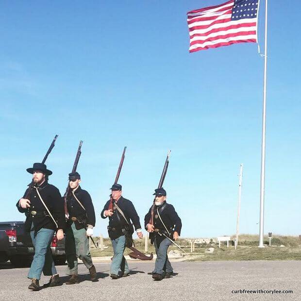On the day that I went to Fort Morgan, it was Fall Garrison Day. There are many events throughout the year at the fort and you can check the schedule on their website. The morning’s events started with a color ceremony and a cannon was even fired. All of this was performed by re-enactors that wore traditional 1865 clothing. It was great to see and gave me a sense of what life might have been like during that time. There were other demonstrations of infantry and artillery drill throughout the day as well, and one of my favorite moments happened after a gun firing demonstration. The re-enactor, an older man, asked the audience if anyone had a question. Someone in the audience asked “Are you a confederate soldier or a Yankee soldier?” and the re-enactor responded by saying “Right now, I am an American”. It was a wonderful moment that made me think, and made me smile.