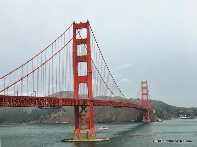 From the bridge, I could see the bay and even Alcatraz in the distance. I’ve seen the Clint Eastwood movie Escape from Alcatraz numerous times, so it was cool to see it in person… even if it was from a distance. Unfortunately, I didn’t have time to do an Alcatraz tour on this trip, but I have heard that it’s surprisingly accessible. Check out this post from Have Wheelchair Will Travel to learn more about accessibility at Alcatraz.