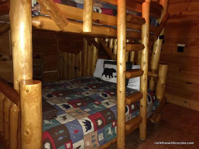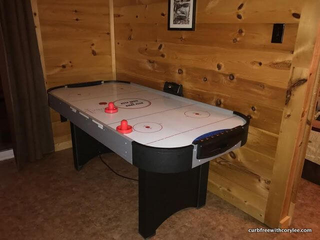 On this level of the cabin, there was a set of bunk beds, an air hockey table, a bathroom with a tub, and a washer and dryer. The bunk beds were not your average children’s bunk beds though. They were homemade wooden beds and 4 people could easily sleep in them (2 on top and 2 on bottom). And with the air hockey table in the room with the bunk beds, wheelchair users can enjoy playing the game.