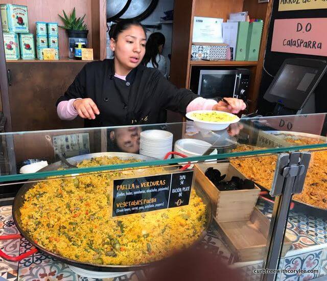While at Mercado de San Miguel, I finally got to chow down on some of the best paella as well. If you haven’t had paella before, it’s a Spanish dish of rice with saffron, vegetables, and you can get seafood or a variety of meats in it. I opted for the vegetable paella and it was delicious! It was exactly as good as I was dreaming about and I washed it down with a pomegranate juice from a juicery inside the market. Mercado de San Miguel is a definite must-do in Madrid and you’ll find no shortage of fantastic things to eat here.