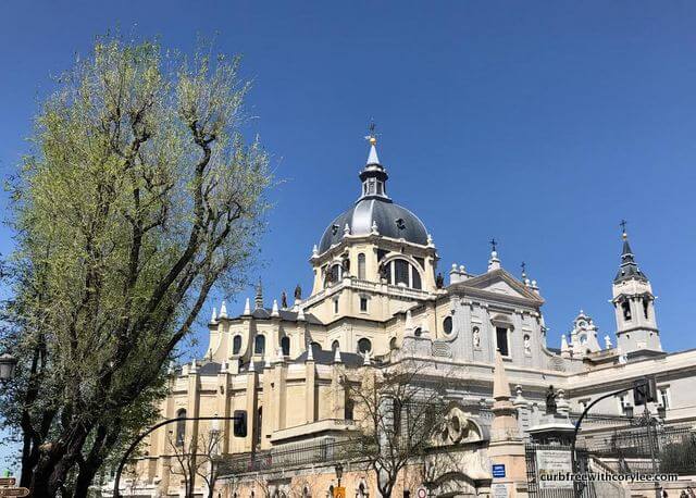Aside from local markets, another thing that I love to visit when I’m traveling, especially in Europe, is cathedrals. They’re always stunning, but the Almudena Cathedral in Madrid might be the most beautiful one I’ve ever seen. I was able to get inside via a long ramp and we spent about 30 or 40 minutes inside wandering around. I was wide-eyed the entire time, taking in the beauty of the cathedral. Construction on Almudena Cathedral began in 1879, but was not fully completed until 1993, so you can imagine the exquisite detail inside this Neo-gothic cathedral.
