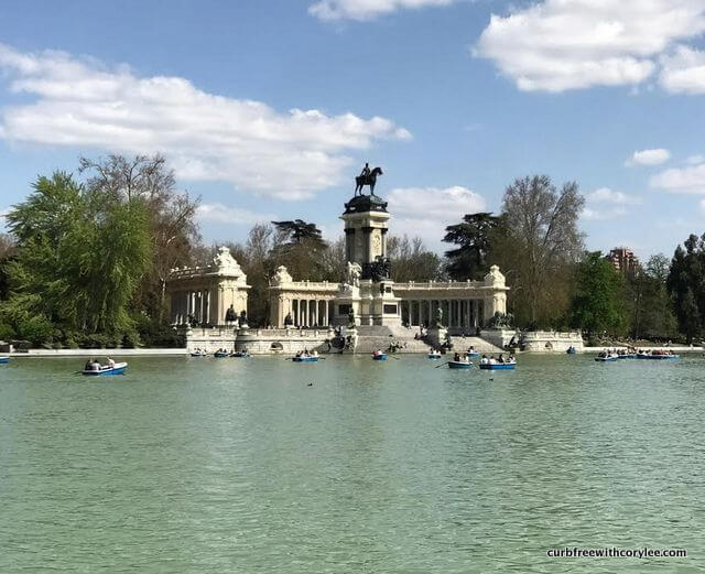 The final stop on our full day tour with Accessible Madrid was Buen Retiro Park, a gorgeous oasis in the center of the city. The park has over 15,000 trees and is spread out over 125 hectares. By the time that we got to the park, my motorized wheelchair was running severely low on battery power and blinking one red light, so I didn’t get to see as much of Buen Retiro Park as I would’ve liked, but I did get to see enough to make me fall in love with it.