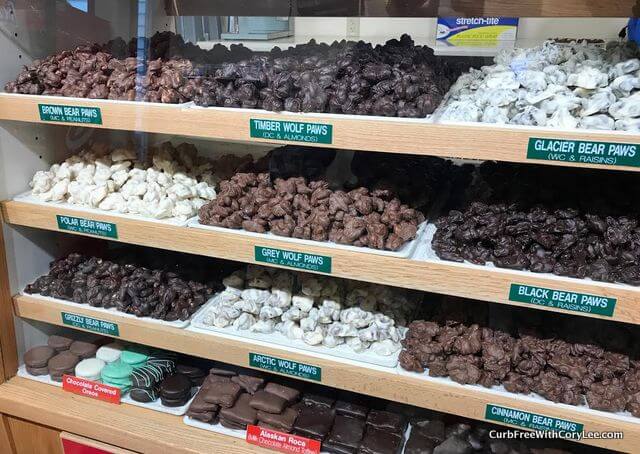 The great thing about Juneau is that it’s small enough to walk/roll. There are tons of shops and restaurants on Franklin Street, which you’ll easily be able to find. There’s pretty much just one main touristy street in Juneau and this is it. I enjoyed browsing for the perfect souvenir and found a store selling all kinds of sweets, which I couldn’t resist.