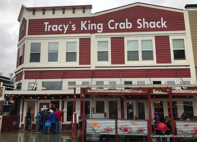 Our cruise ship docked in a perfect location, within walking/rolling distance of all that makes downtown Juneau spectacular. Our ship was directly across from the Mount Roberts Tramway (more about this attraction below) and within a stone’s throw of Tracy’s King Crab Shack. Tracy’s is an extremely popular restaurant in Juneau, especially since it’s so close to where the cruise ships dock. As the name suggests, they have crab legs, crab cakes, and even crab soup if you want something hot on a chilly day. I didn’t eat at Tracy’s, but everyone that I talked to said that they loved it. I did watch one of the workers handling the giant crab legs in front of the restaurant though, and it was quite a sight.