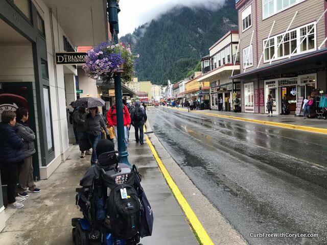 Downtown Juneau was predominantly wheelchair accessible with curb cuts and every store that I wanted to go in was accessible. The only slightly disappointing thing about my experience wandering the street(s) of Juneau was the fact that it was raining, but that just gave me more opportunities to pop into all of the stores and buy extra souvenirs, so you won’t hear any complaints from me!