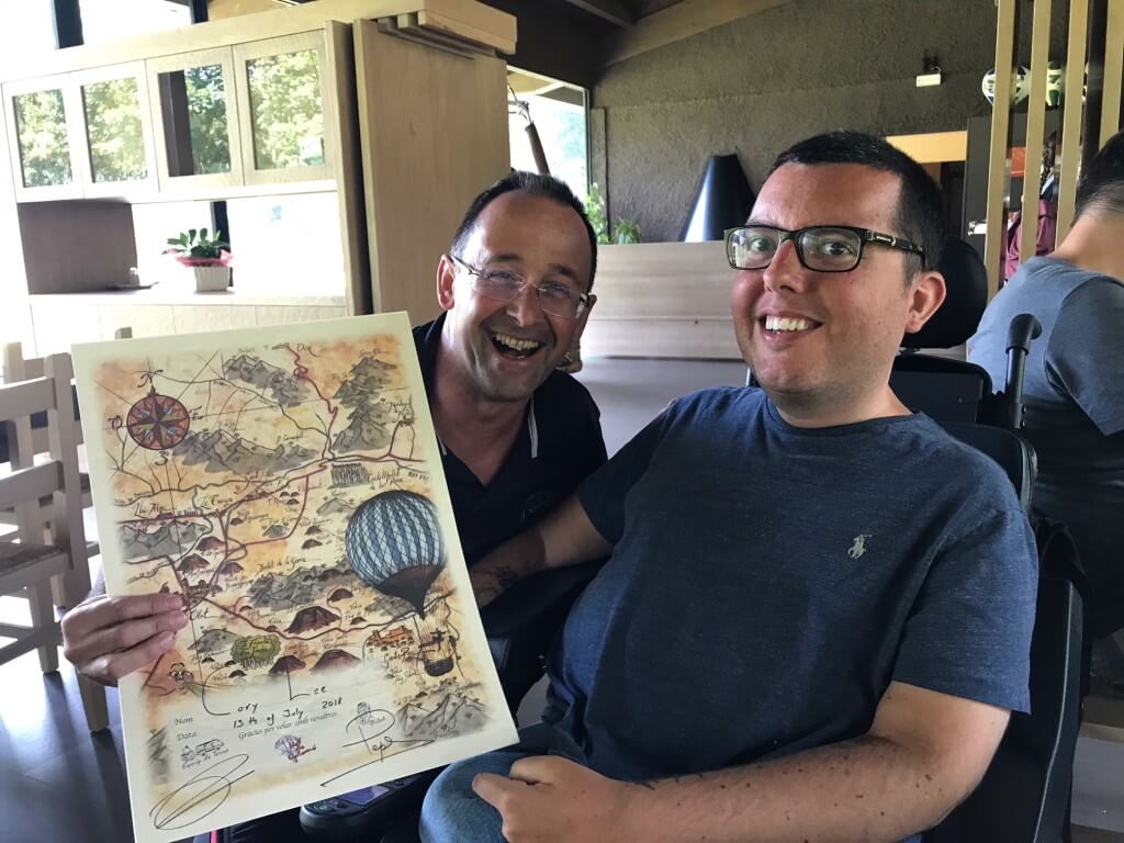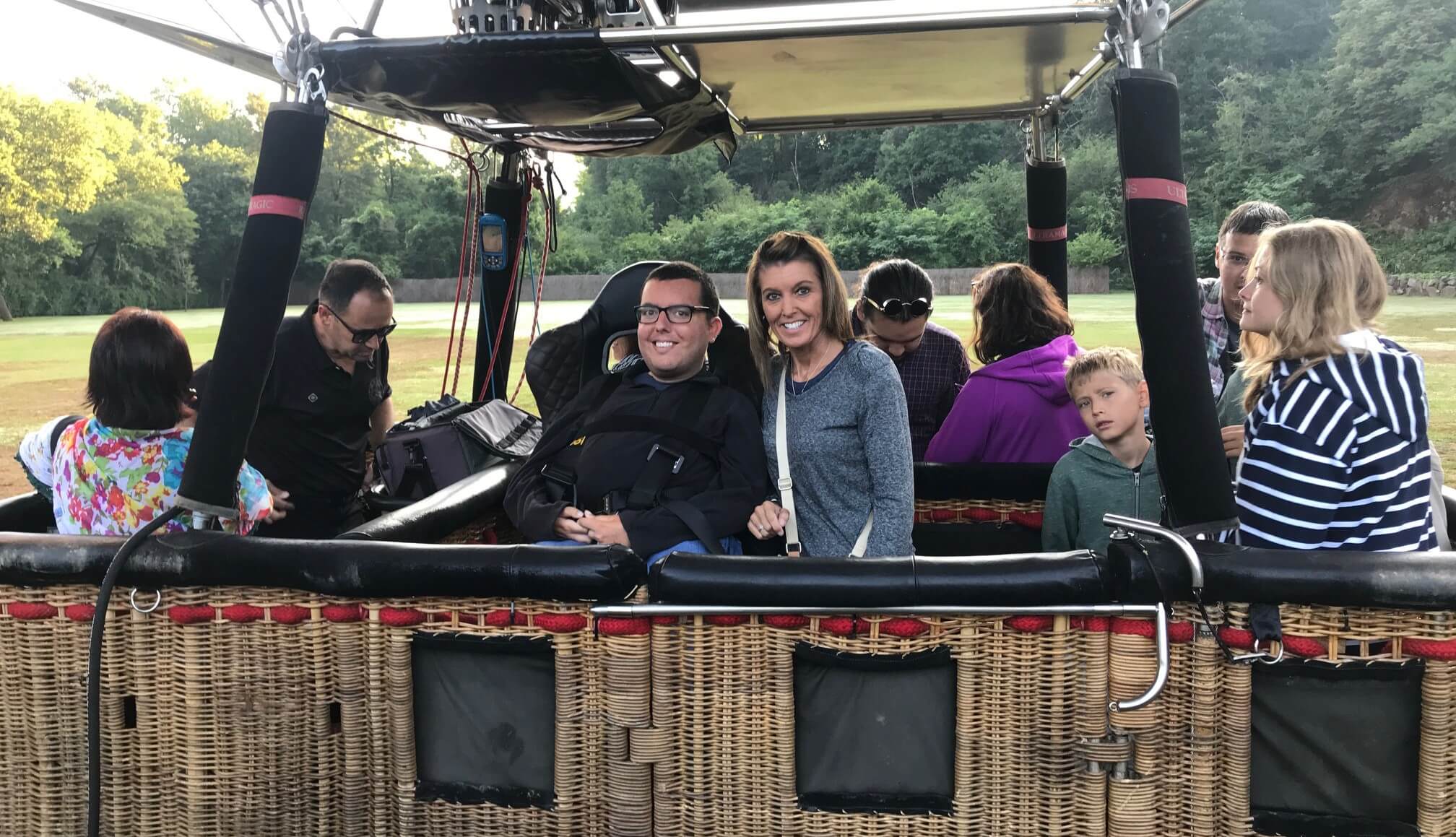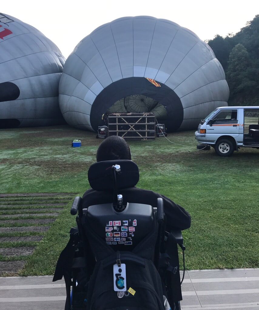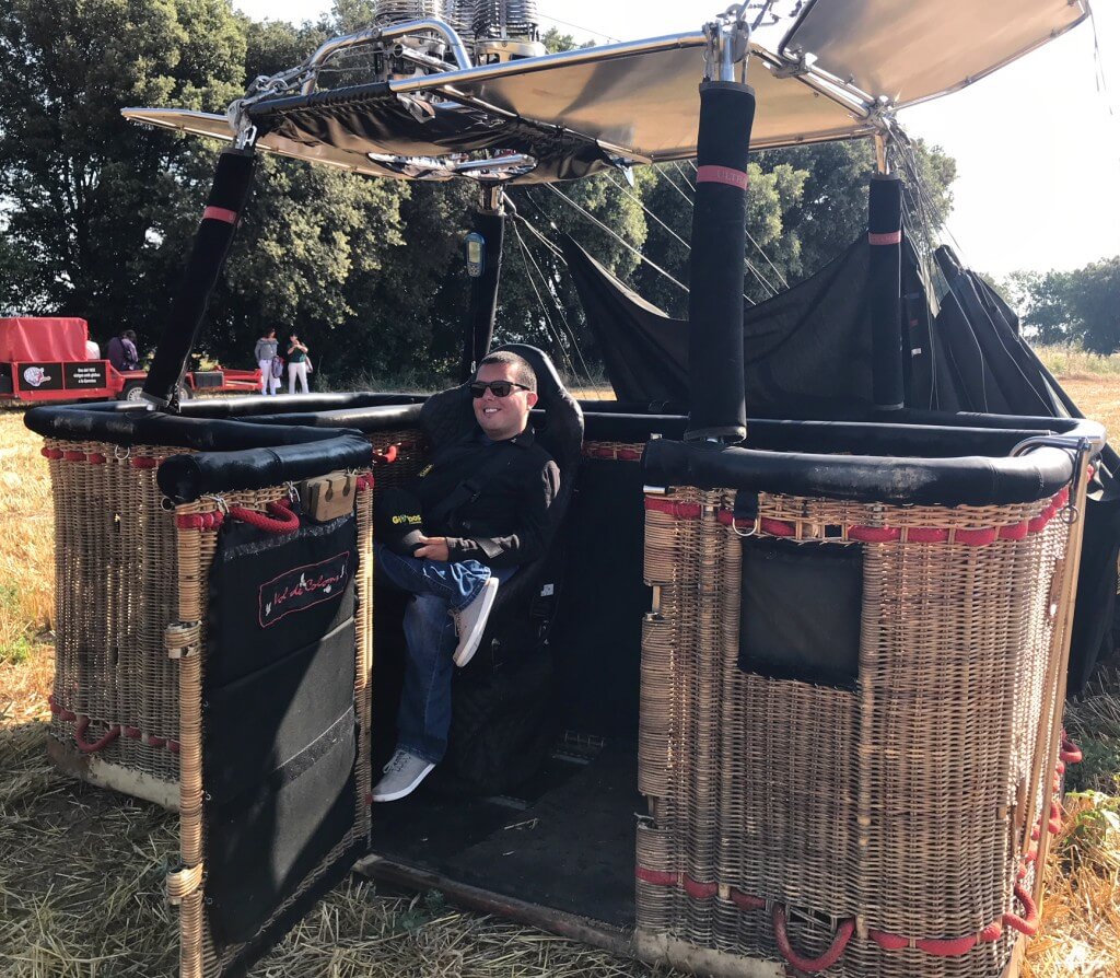Vol de Coloms does adaptive ballooning and it was excellent to see this in Catalonia. To get inside the basket of the balloon, one side of it opens up as a door and that gave me an easier way to get inside instead of having to climb over the basket (which would be impossible). My mom, along with the assistance of the Vol de Coloms staff, physically lifted me out of my wheelchair and sat me in a seat inside the basket. It was a fairly quick and easy transfer, but for added safety, you could also use something like the ADAPTS sling (use promo code CORY15 to get 15% off) to be lifted. The seat inside the basket was awesome and had a seatbelt and even a remote control to raise the seat up. With the remote, I could raise the seat so that I could look over the basket and see everything down below.