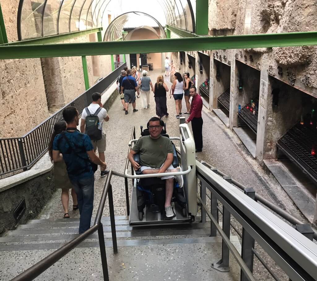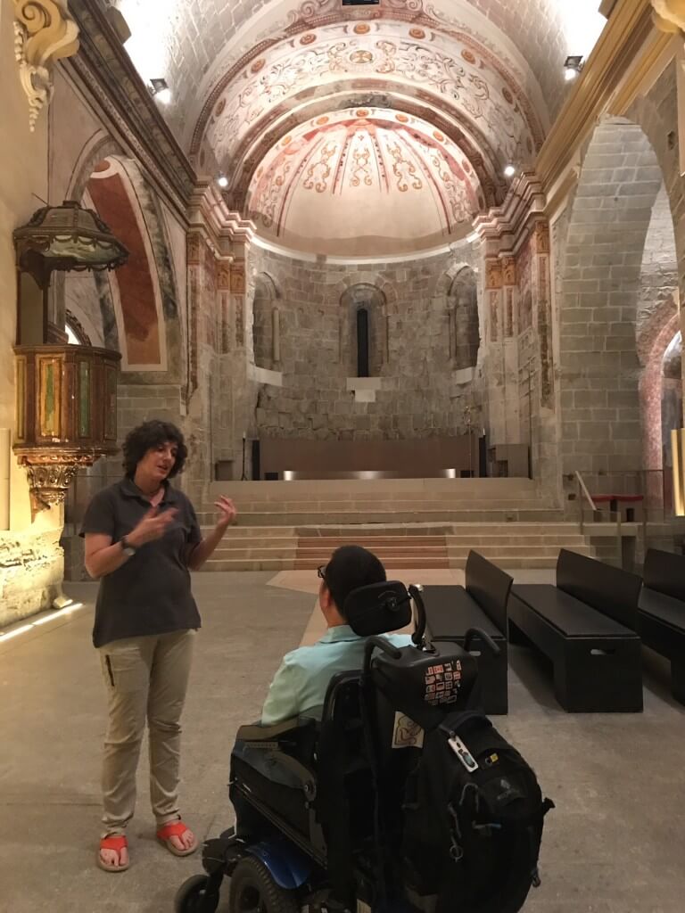 Catalonia is full of natural beauty and aside from hot air ballooning, one of the best ways to see it is on the Green Ways. Green Ways are paths that are wonderful to bike or hike on, and many of them are smooth enough for a wheelchair to roll on. Catalonia’s province of Girona actually has almost 80 miles of Green Ways, so it’s easy to get in touch with nature. I enjoyed driving my powered wheelchair on the Green Ways while my mom biked. It was excellent to be outdoors and the views of the mountains and open fields made it even more special.