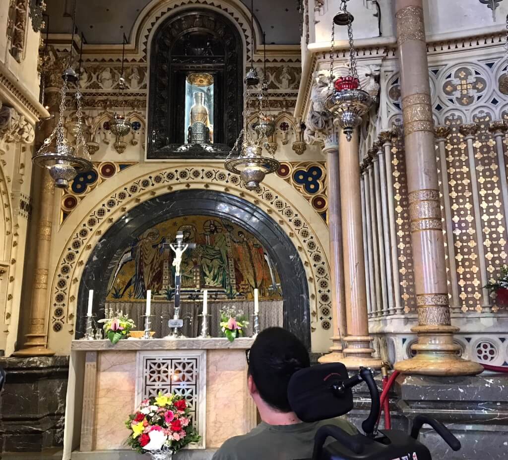 Getting to the Virgin of Montserrat, also known as the Black Madonna, was a bit tricky as a wheelchair user, but I made it happen. On the left side of the monastery’s exterior, I made my way to a set of stairs, but luckily there was a lift. I found a worker that could operate the lift after a bit of searching and made my way up and into the building. Unfortunately, the Black Madonna sits at the top of another set of stairs where there is no lift, but I could see her from down below. I had a decent view of her from the left side and the back. The statue was rather small, but it is said that if a woman wants to get pregnant, all she has to do is kiss the hand of the Black Madonna.