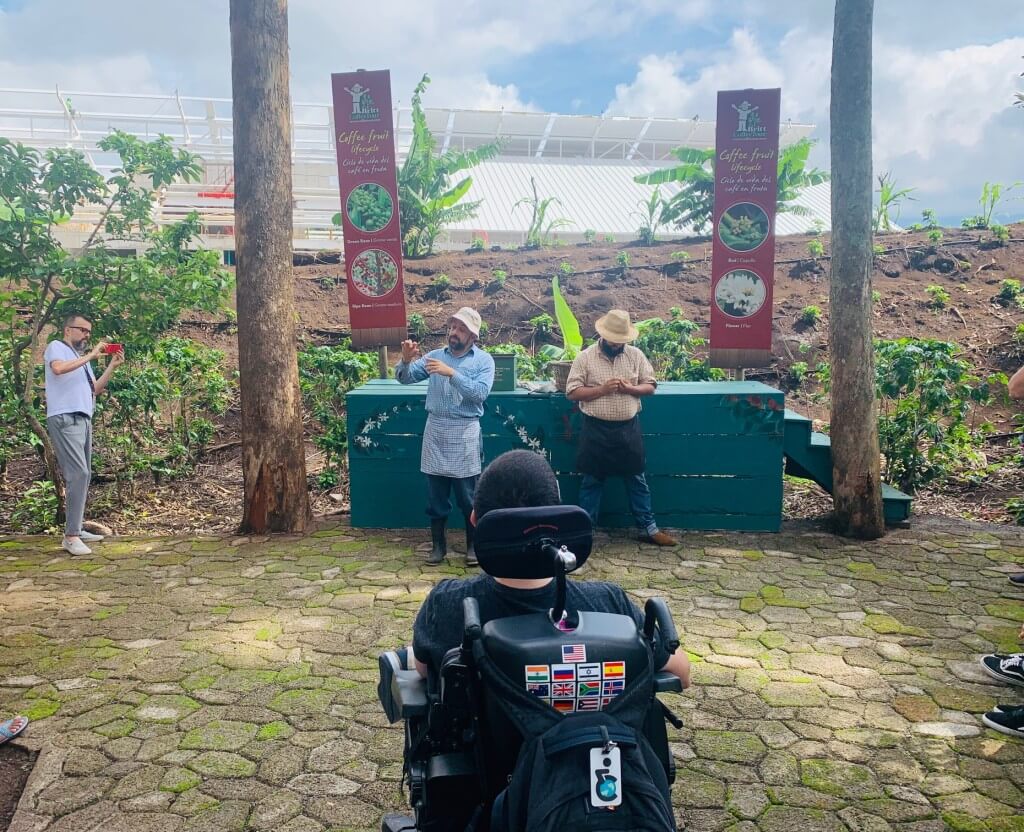 Most of the tour took place outdoors and there were paths all throughout the coffee plantation. My wheelchair handled most of them very well, but there were some bumpier areas. The tour leaders did a good job of keeping the group together and not going too fast though, so I was easily able to keep up with everyone the entire tour.