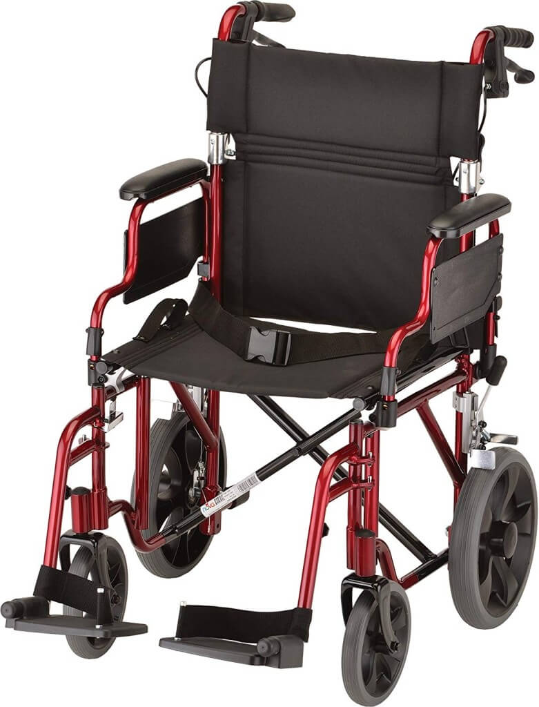 The last manual wheelchair on the list is also a lightweight transport wheelchair, this time by NOVA. This lightweight wheelchair for travel takes all the best features of a manual wheelchair that can be used for independent use and puts it in a sturdy transport wheelchair. The frame is a durable yet lightweight material and comes in two colors, red or blue. The design includes larger rugged wheels, hand brakes, and footrests that all folds into a 13 inch unit, perfect for easy storage.