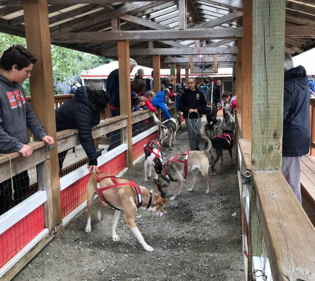 The first activity that I enjoyed at Alaska 360 was learning about and interacting with the sled dogs. We started by meeting a seasoned musher, the person who controls the dogs, and she told us all about how they train and what racing with the dogs is like. It was fascinating to see the equipment and hear her stories. Let’s just say that sled dog racing certainly isn’t for the faint of heart. It takes a LOT of discipline and many cold nights.