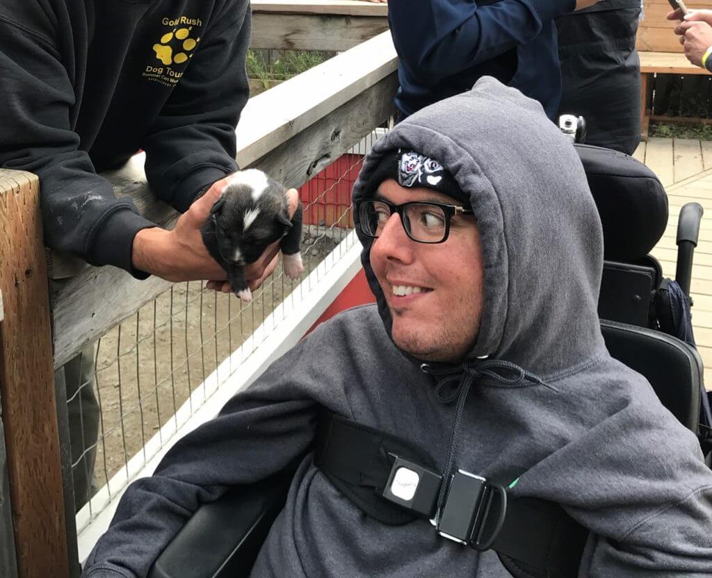 As soon as my Holland America ship docked in Skagway, I quickly went to the nearby meet-up spot for my shore excursion. I booked the wheelchair accessible “Gold Panning, Sled Dogs, and 40 Below“ excursion directly through Holland America, and it was incredibly easy to arrange on the Holland America website in the weeks leading up to my cruise. It’s rare to find a cruise line that offers wheelchair friendly shore excursions, so I was thrilled that Holland America offered accessible options in every port of call during my Alaskan cruise.