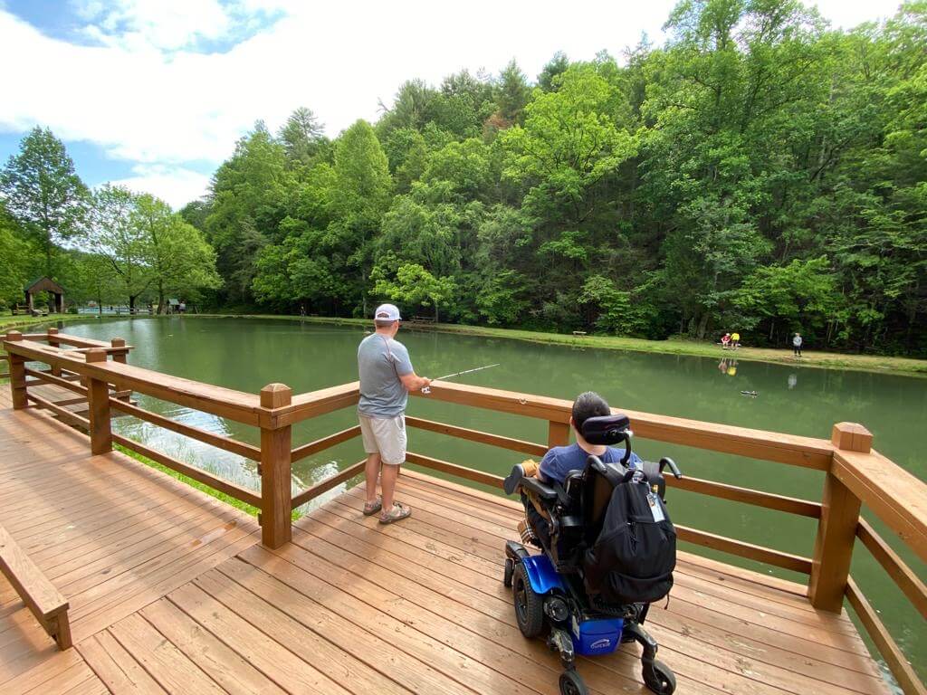 There are resort amenities as well to give visitors more to explore. Little Valley Mountain Resort, which houses Harvest Moon, has a fishing pond with a wheelchair accessible boardwalk, a fire pit, a golf course, and a pool, but no pool access lift unfortunately.