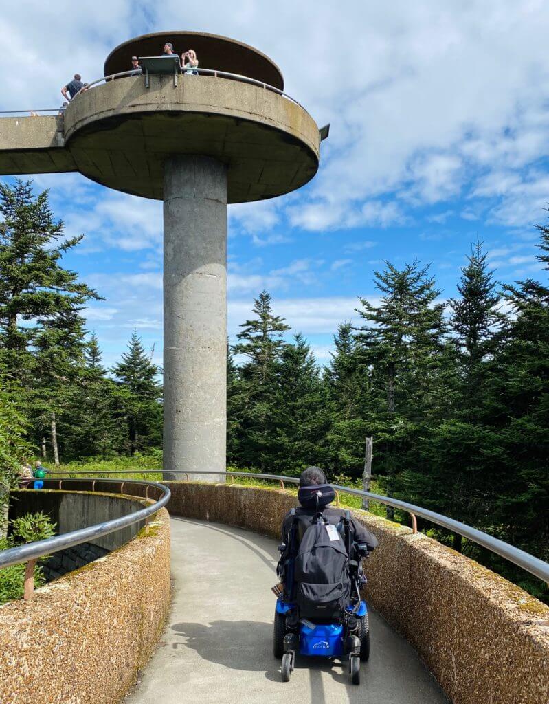 On a sunny day, I would absolutely recommend trying Clingmans Dome if you use a powered wheelchair. You’ll have the best views in the Great Smoky Mountains and it’ll be somewhat of an adventure during your trip. Just use your best judgment and have fun!