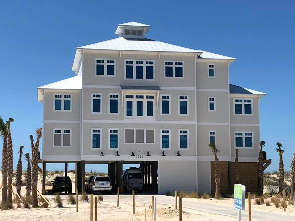 This 3 bedroom, 3 bath home has space for everyone as a half-duplex with a shared pool and grill space. Located right on the beach, there are great views and lots of indoor space. The dining room overlooks the ocean with an open concept kitchen. This home is a good option for having access to the beach, while feeling secluded and like you’re at a resort. Everything is very self-contained for a great retreat on the beach.