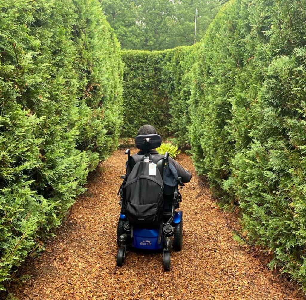 The maze is beautiful and perfect for wheelchair users. The ground within the maze wasn’t paved, but it was hard packed with dirt and very easy and smooth to roll on. The paths were also rather wide, which made it easy to maneuver with a wheelchair.