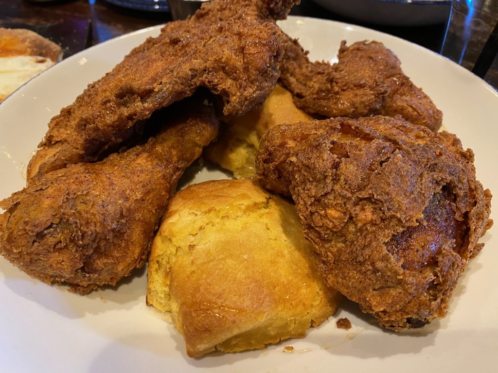 Social Southern Table & Bar is a rustic-chic restaurant with a full bar, serving top-end whiskeys, craft beer, and wine. Their food menu has all kinds of southern favorites, including chicken-fried green tomatoes with jalapeño ranch, which I had to order as an appetizer. They were cooked perfectly and rivaled some of my favorite fried green tomatoes ever, which were in Savannah, Georgia.
