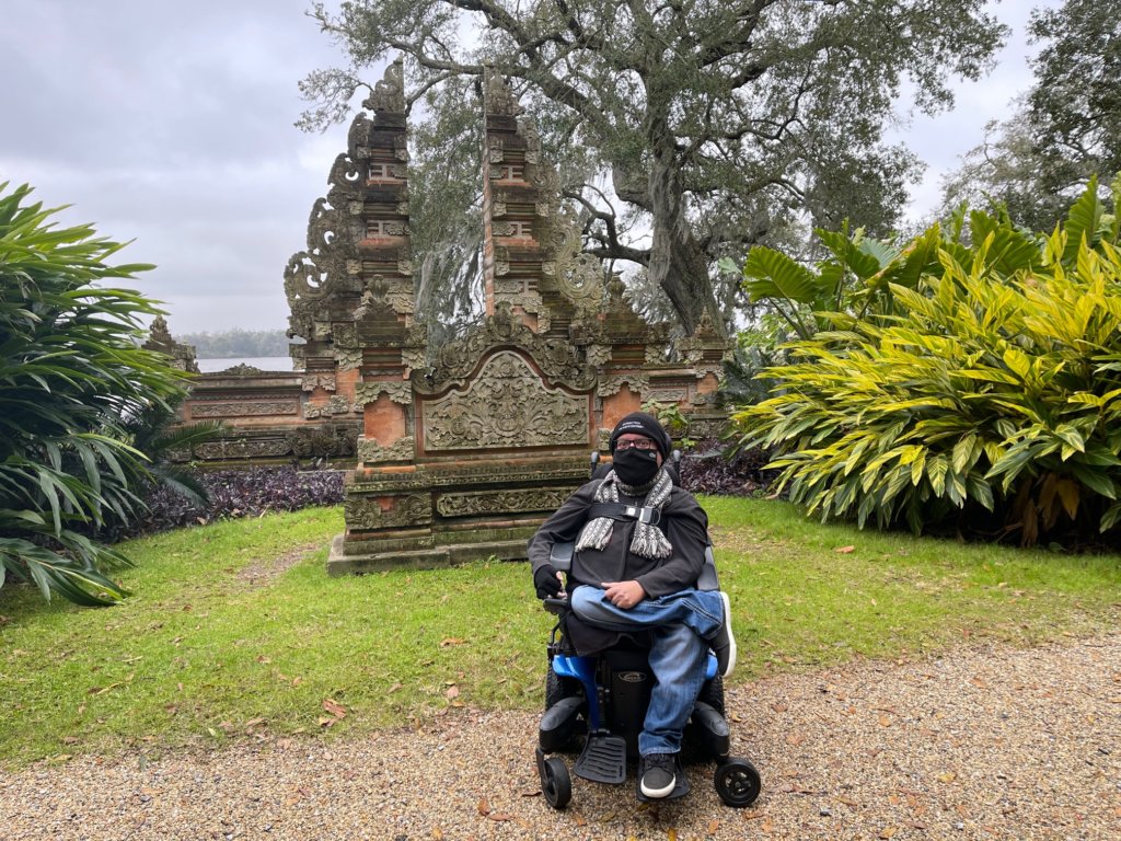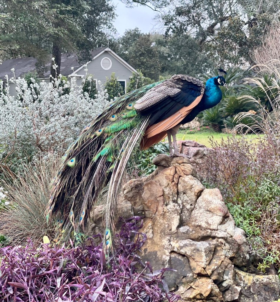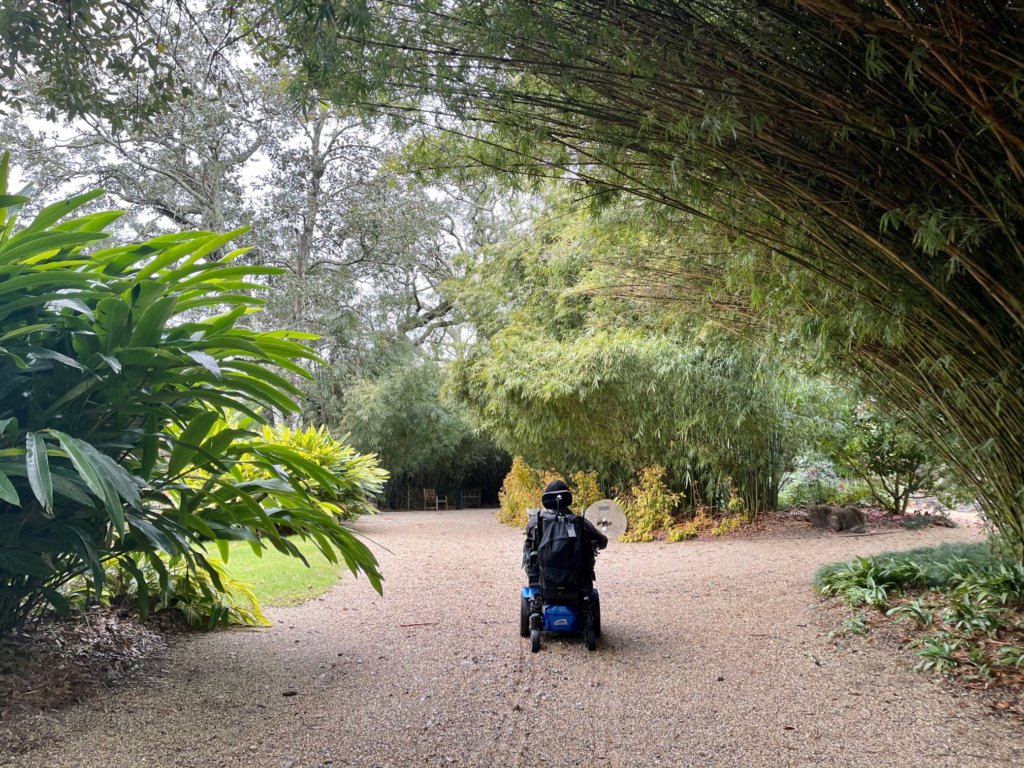 While rolling around the gardens, I saw the flora, fauna, and quite a few peacocks even. It was beautiful, but the paths were laid with pea gravel, so some spots were a bit tricky as a wheelchair user. I only got stuck in one spot though & had to get a little push. My motorized wheelchair handled it all pretty well and I was able to enjoy nearly every aspect of the gardens, but a scooter or manual wheelchair could be more difficult to navigate on the paths, especially after some rain.