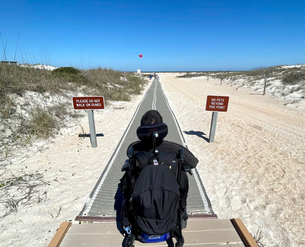 The next stop on our RV adventure was St. Augustine and while in the city, we were able to stay at the beautiful Anastasia State Park for three nights. We had a back-in spot here, so it wasn’t as easy as a pull-thru site, but it did give my mom some good practice with driving the RV. The spot where we parked the RV was quite large and we had a picnic table and fire pit, which we made use of a couple times. Anastasia State Park had a beach with a beach access mat and complimentary beach wheelchairs as well, so this is a wonderful location for wheelchair users.