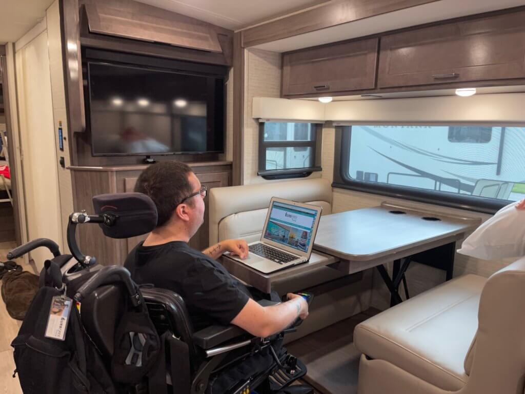 Going on a trip in an RV has been something I’ve wanted to do for years. I remember being a teenager and seeing the Robin Williams movie RV in a theater. While I didn’t want an RV trip to be as “interesting” as the one in the movie seemed, I was immediately intrigued and thought that it would be so much fun to travel from the comforts of an RV. Since then, I’ve Googled “wheelchair accessible RV” countless times with dismal results… until a few years ago, anyway.