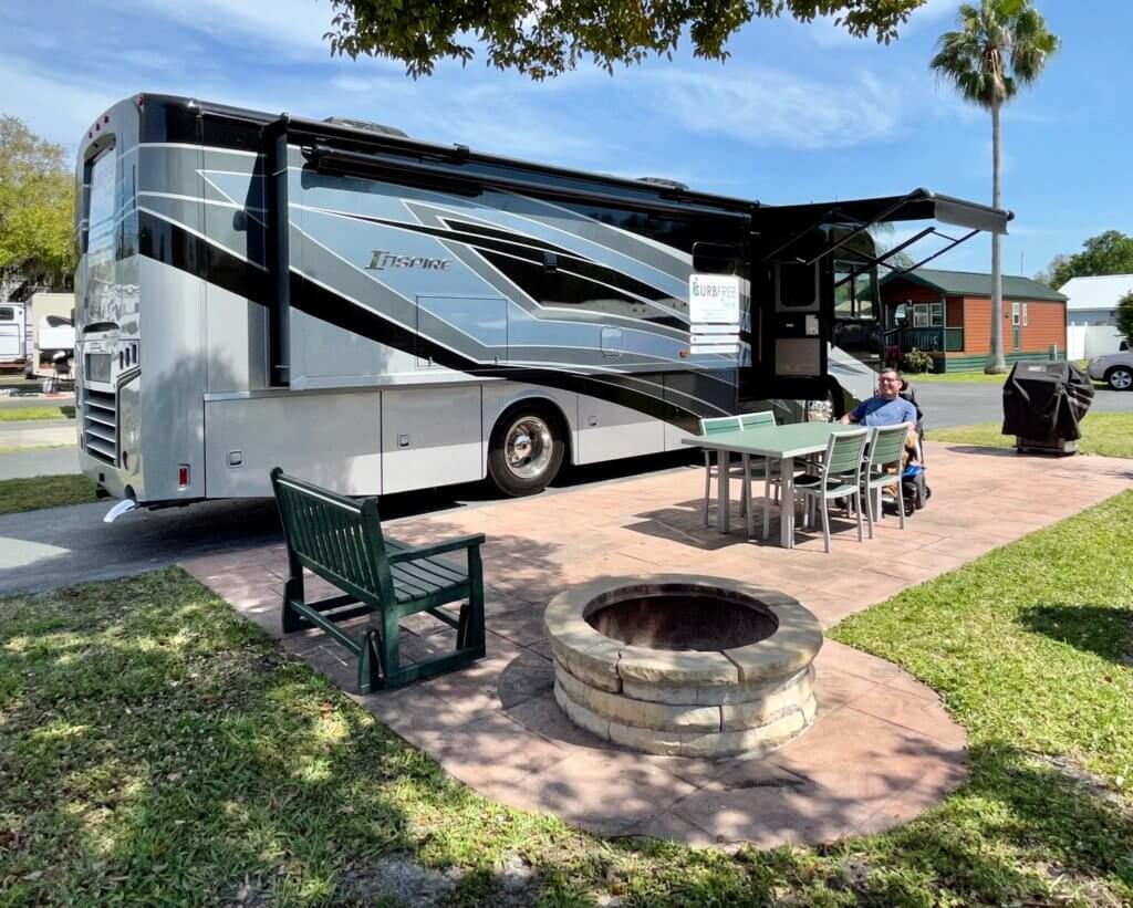 This was the first campground we stayed in. While we only stayed here for one night, it had a perfect location in Orange City and was only a short drive from La Mesa RV, where we picked up the Winnebago Inspire AE. At Orange City RV Resort, we had a pull-thru site, which made driving in and out with the RV easy breezy. We had full hookups as well and the resort had amenities such as a pool, games, a playground, and a lobby area, which was serving breakfast for a small cost while we were there.