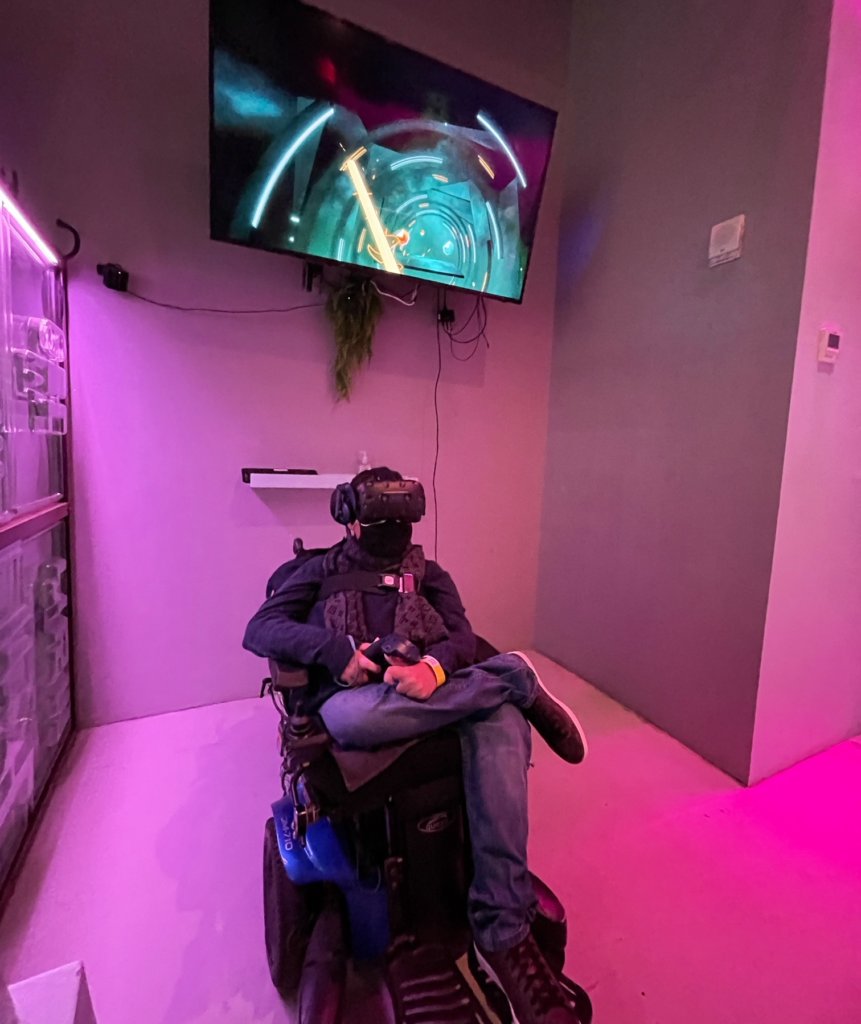 I had never tried VR in the past, but this was the perfect place to try it out for the first time! To be honest, I worried if I’d even be able to play VR games, but the VR World staff did a phenomenal job of helping me play the games and were super friendly. They recommended specific games after learning about my accessibility needs and even helped position my hands, so that I could play the best that I could.