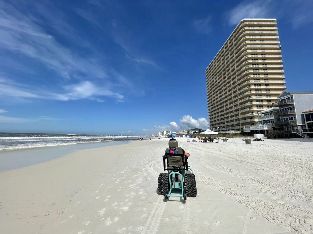 Manual beach wheelchairs are available to use for free on a first-come, first-served basis at Russel-Fields City Pier & Beach, St. Andrew’s State Park, Camp Helen State Park, and some resorts even offer free beach wheelchairs (we’ll discuss each of these options in more detail in just a bit). But if you would rather use a powered beach wheelchair to get out on the beach, that is an option as well.