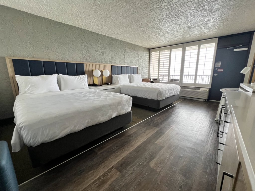Every room at Holiday Inn Resort has a view of the ocean. I stayed in a wheelchair accessible room with two beds (a hoyer lift could not roll under the beds, which was my only complaint). The room was spacious enough for me to maneuver around and we even had a balcony. There was a small lip to go on the balcony (about one inch), but my wheelchair was able to go out there.