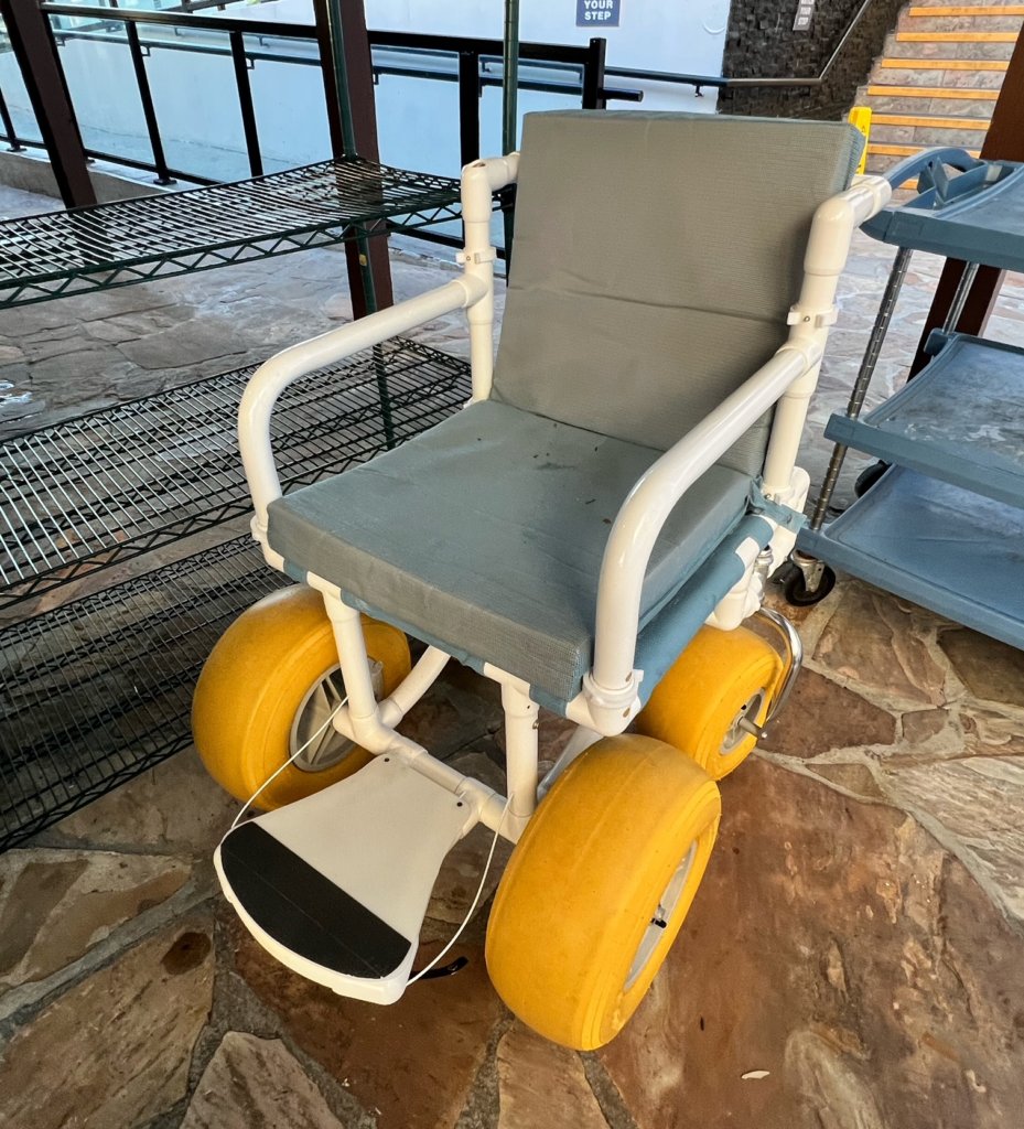 If you’d like to venture a bit further out on the beach, manual beach wheelchairs are available complimentary on a first-come, first-served basis. If you’d like to use one, just inquire at the ranger station. They have standard manual beach wheelchairs and ones that can float in the water as well.