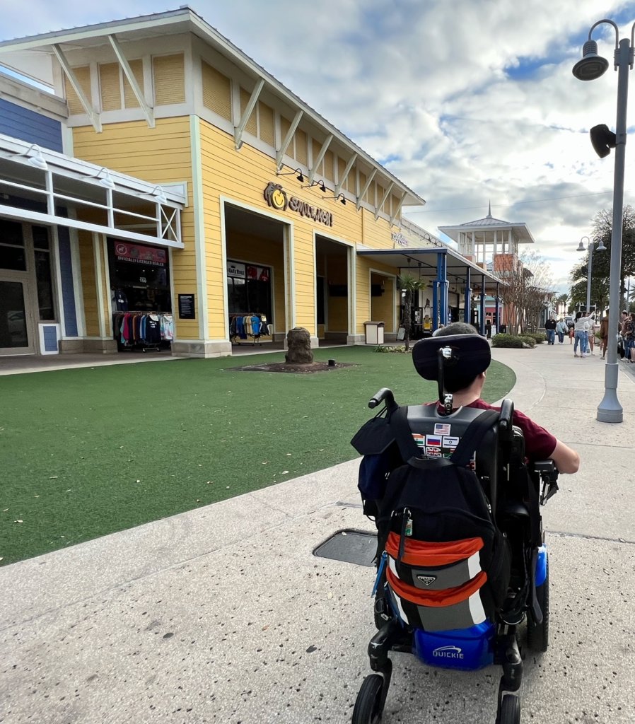 Start your visit to Pier Park at the SkyWheel. The SkyWheel is a giant Ferris wheel and similar to the London Eye or the High Roller in Las Vegas, each of its pods are enclosed. What’s really awesome though is the fact that all of the SkyWheel’s pods, except for one, are wheelchair accessible.