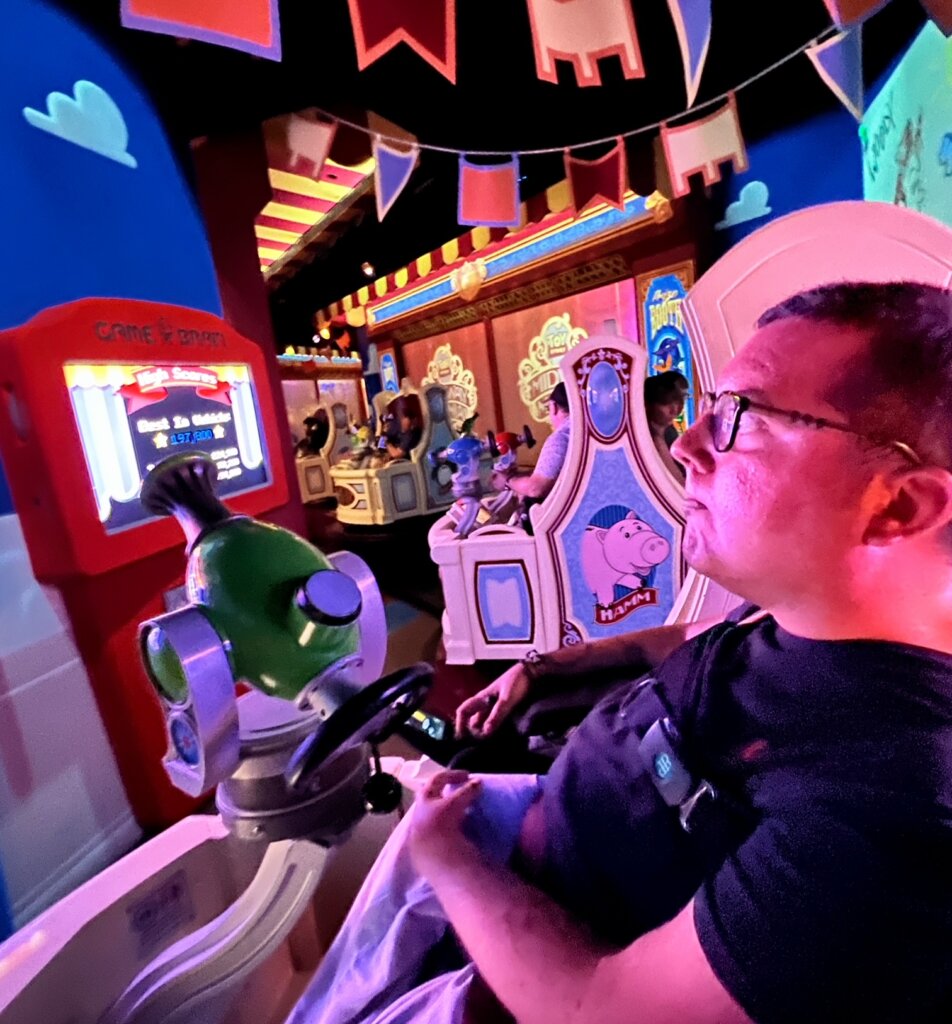 • Toy Story Midway Mania – This is a really fun ride and fully accessible, but it is very jerky. If you have poor upper body/neck control, it could be challenging. I struggled a bit with remaining stable during this ride, but luckily, my mom was right beside me throughout the whole ride, so she was able to help when I needed it.