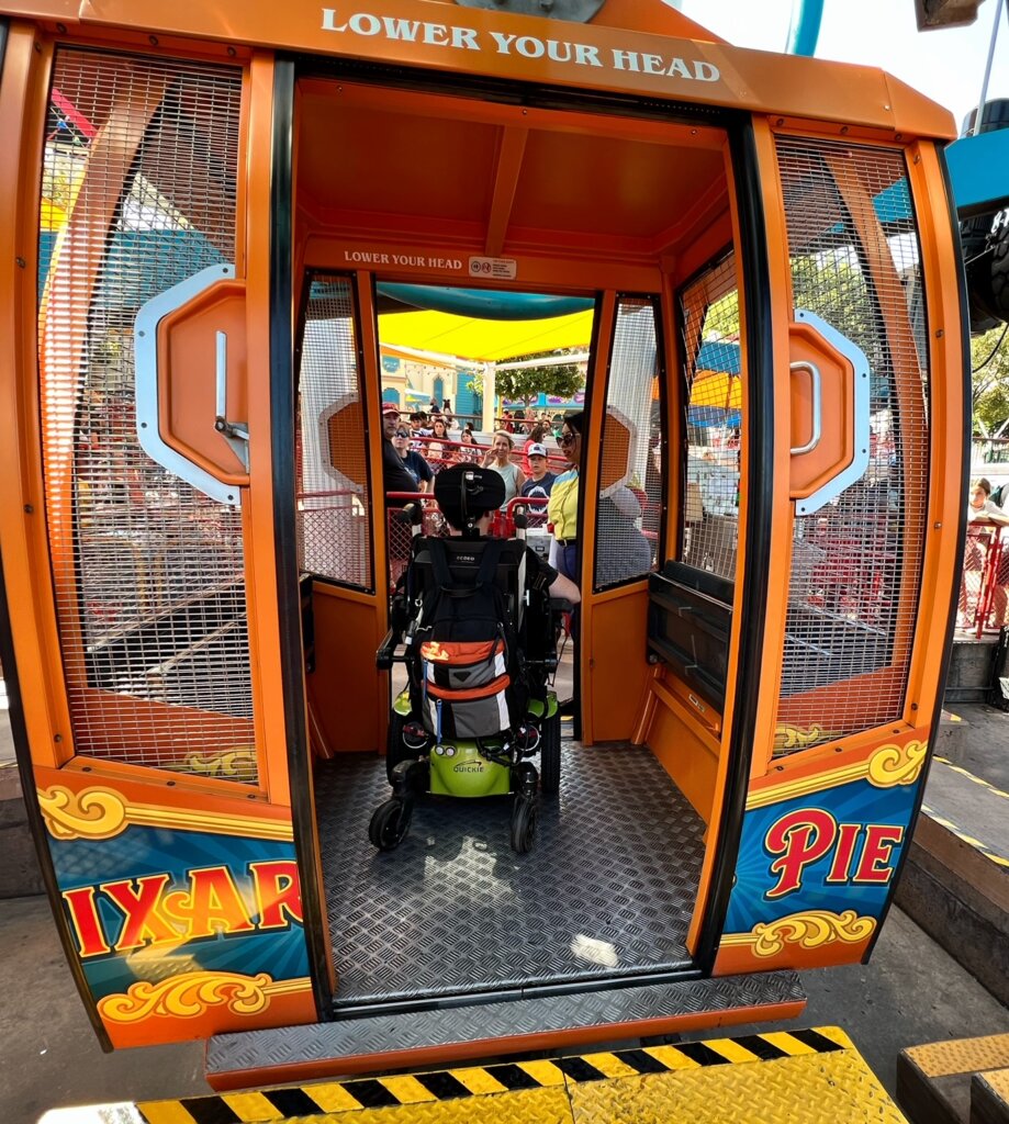 • Pixar Pal-A-Round – This is the iconic Ferris wheel at California Adventure. You can choose for your accessible pod to swing or not swing during the ride. Choose the swinging option for an accessible thrill, but be aware that it really swings! I loved it, but may have screamed a time or two.