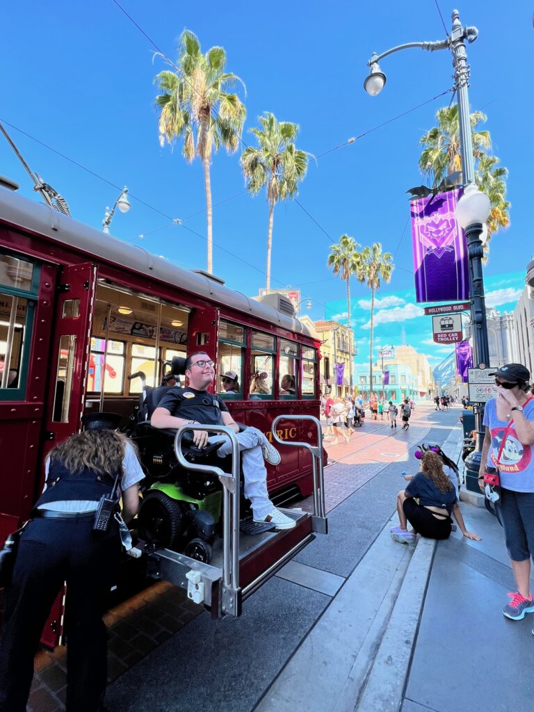 I also want to let you know about a great way to get around Disney’s California Adventure theme park as a wheelchair user. The Red Car Trolleys are wheelchair accessible and can take you to various areas of the park (much like the Disneyland Railroad that I mentioned earlier). It’s a good way to conserve your wheelchair battery life! Trust me, you don’t want your powered wheelchair to die at a Disney park. I’ve been there, done that before and it wasn’t fun.