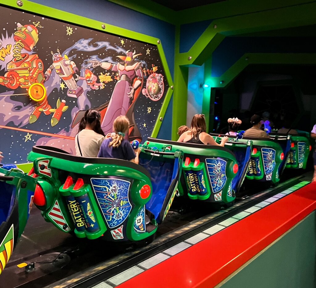 • Buzz Lightyear Astro Blasters – This ride is just like Buzz Lightyear’s Space Ranger Spin at Walt Disney World, which is always a lot of fun, so I enjoyed riding it a couple times. I was able to board the ride vehicle with a ramp and then my wheelchair was secured for a safe ride. During the ride, I loved being able to spin our ride vehicle, but since you can control how much it spins, spinning is totally optional.