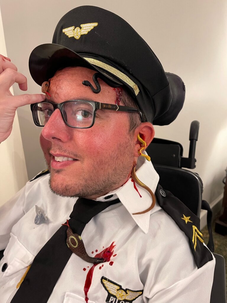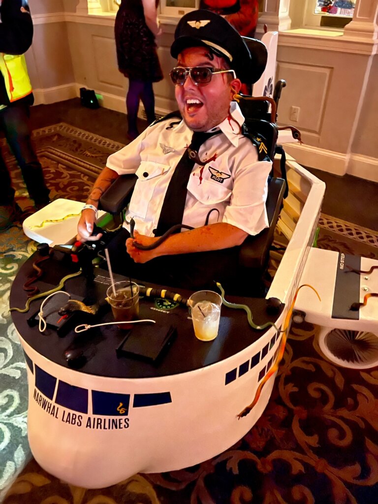 A few months before going to Salem, I reached out to the incredible team at Magic Wheelchair and asked if they could possibly make me a Halloween costume for the Halloween Ball. They agreed to do it and hired a local company (Narwhal Labs) to build a remarkable “Snakes on a Plane” wheelchair costume for me. They literally turned my wheelchair into an airplane. It was insanely cool!