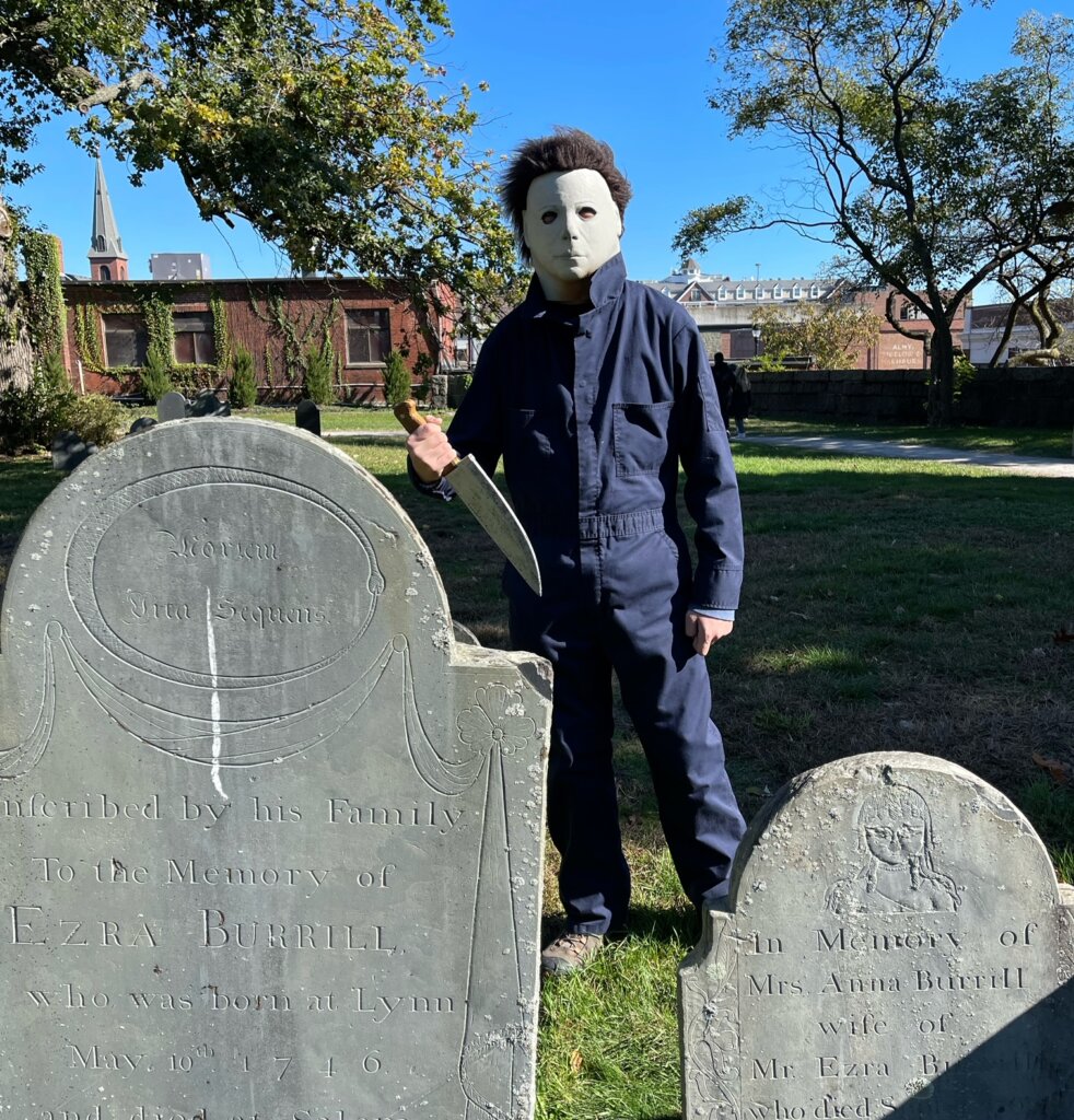 To be such a historic cemetery, I was surprised by how wheelchair accessible it was. I entered via a side entrance and there were smooth paths throughout most of the cemetery. I didn’t have any issues getting around and I even saw Michael Myers in the cemetery at one point, which was quite scary (and yes, I did ask him to pose for the photo below).