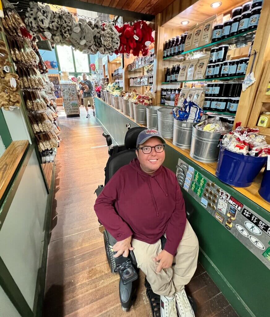 Accessibility at both the Jordan Pond House Restaurant and gift shop was fantastic. There were ramps within the gift shop and it was easy to maneuver within the gift shop for the most part. An elevator was available as well to access the upper level of the restaurant, which has a nice accessible viewing area of Jordan Pond. Even if you’re not eating here, the view is worth checking out!