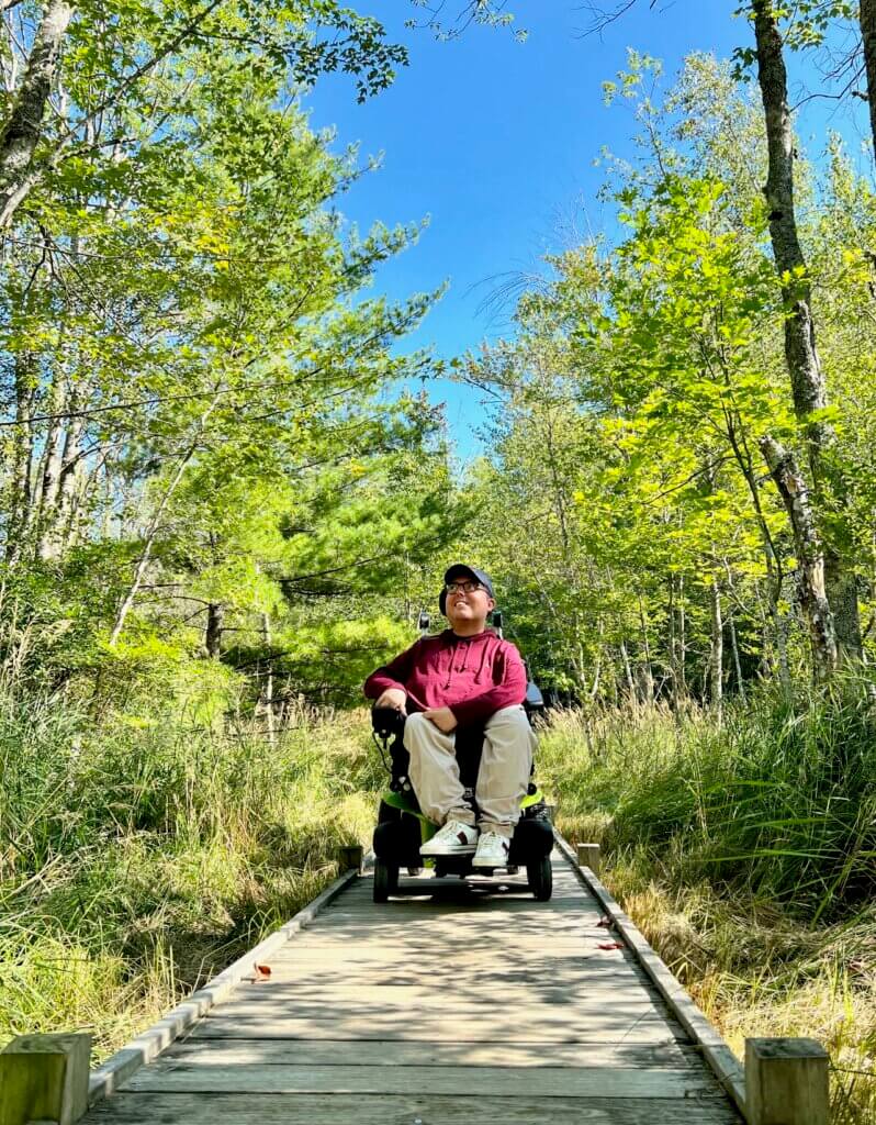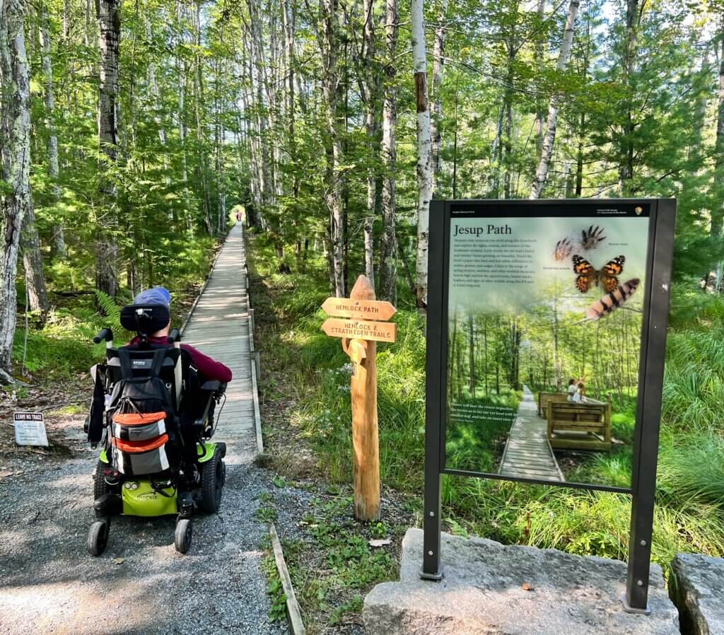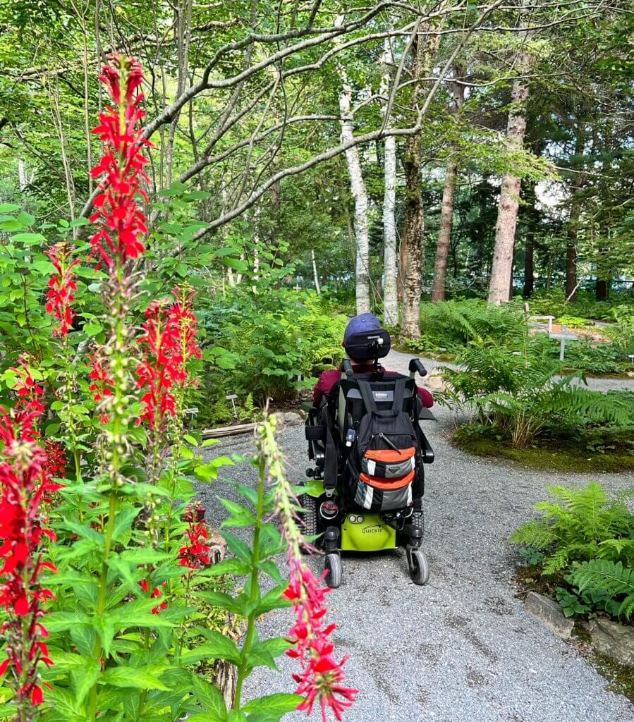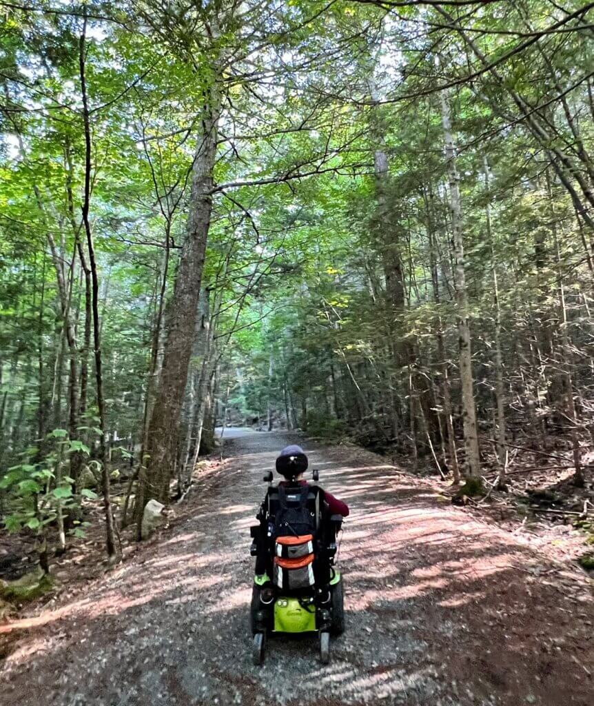 In addition to the carriage roads in Acadia National Park, there are also some accessible trails that you can roll on. I loved rolling on Jesup Path and Hemlock Loop. They are located in the Sieur de Monts Spring area of the park.