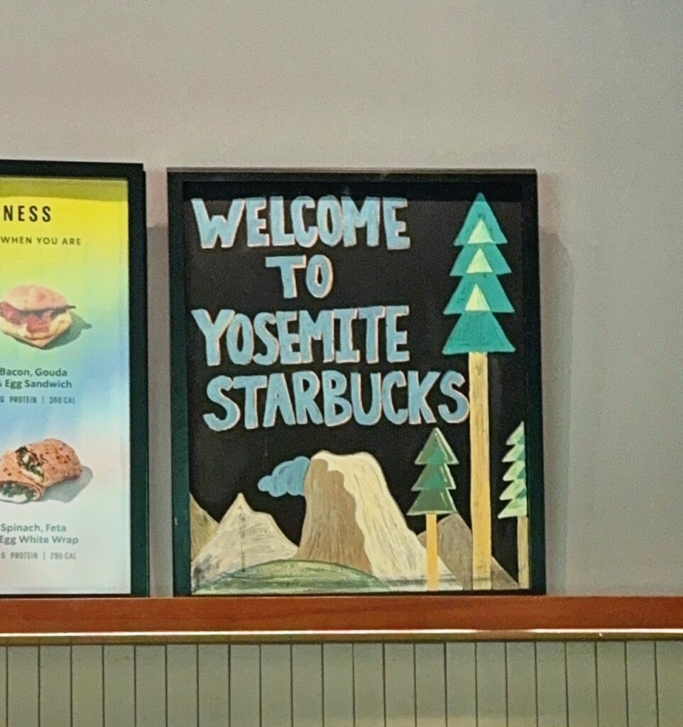 At the end of the Yosemite Valley Floor Tour, we were dropped off back at the Yosemite Valley Lodge. It was time for lunch, so we decided to eat at the lodge. The Yosemite Valley Lodge has a food court with a variety of options and there is a full Starbucks as well. I opted for a latte and a sandwich from Starbucks, but no matter what kind of food you’re in the mood for, you are sure to find something yummy here.
