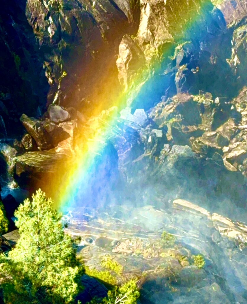 There were accessible parking spots near the dam and the viewing area near the dam was paved and easy to access. Plaques were on display and they told about the history of Hetch Hetchy, which was interesting to learn about. We spent about 30 minutes admiring the incredible views of Hetch Hetchy and even saw a vibrant rainbow at one point (see it in the photo below).