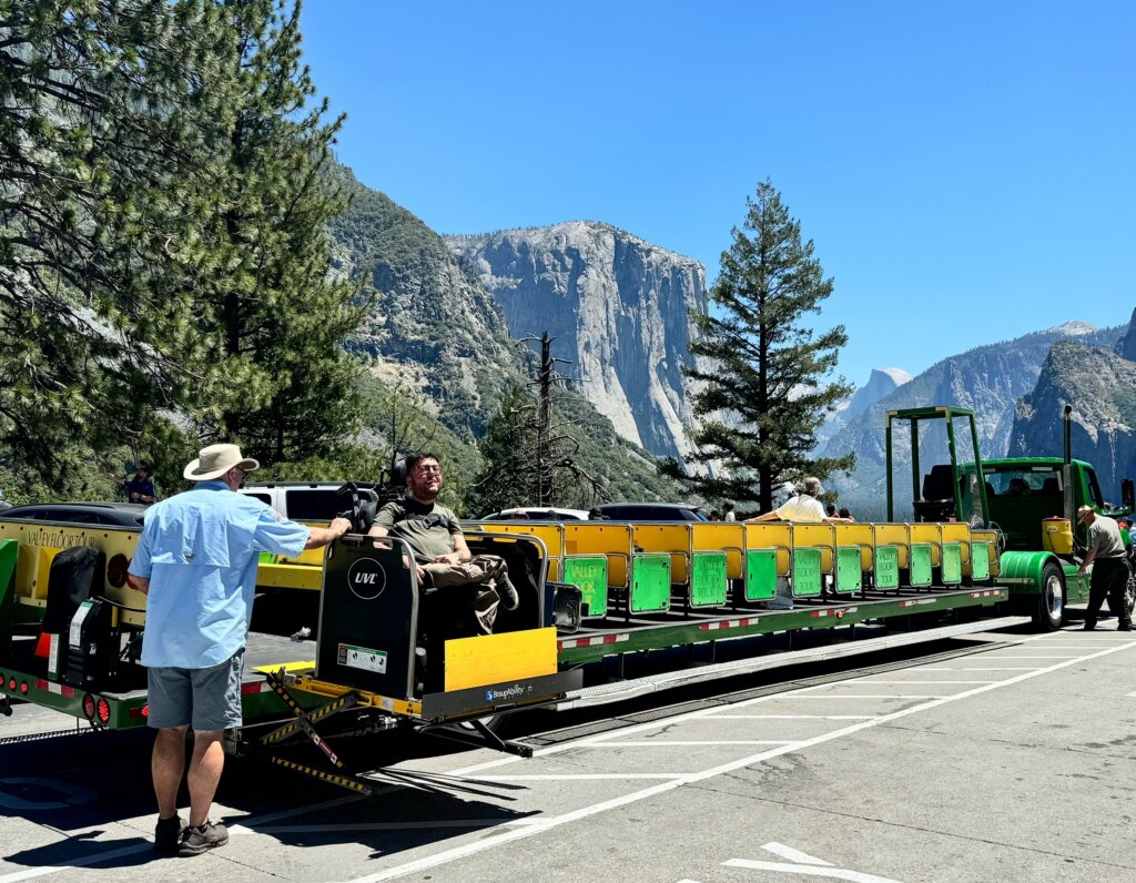Once we arrived to Yosemite Valley Lodge, I exited the YARTS bus via the lift and it was time to start our adventure in Yosemite! Since we had a limited amount of time in the park, we decided to take a tour to see the highlights. One of the most accessible, and most unique, tour options is the Yosemite Valley Floor Tour.