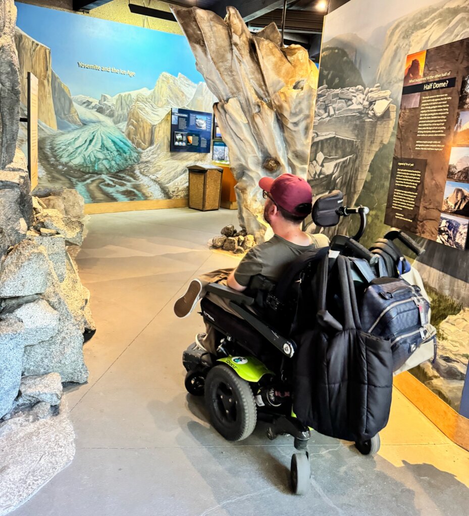 We started by watching a film about Yosemite National Park in Yosemite Village’s theater. The film explained the history of the park and I really enjoyed learning more about it. The theater was accessible and had wheelchair seating areas. Next, we checked out the museum, where we learned even more about the park’s offerings and the museum was completely wheelchair accessible as well.