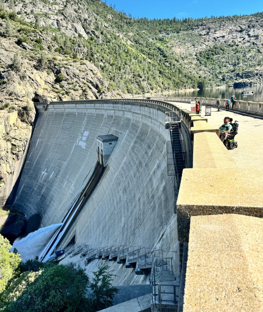 The next morning, we drove our accessible rental van to Hetch Hetchy, which is a part of Yosemite National Park. To get to Hetch Hetchy, you do need to drive your own vehicle because the park shuttles and YARTS buses don’t go here. From the Yosemite National Park entrance near Rush Creek Lodge, it takes about 45-60 minutes to drive to Hetch Hetchy. The road is completely paved, but quite bumpy, so do be prepared for that if you have poor upper body or neck control.