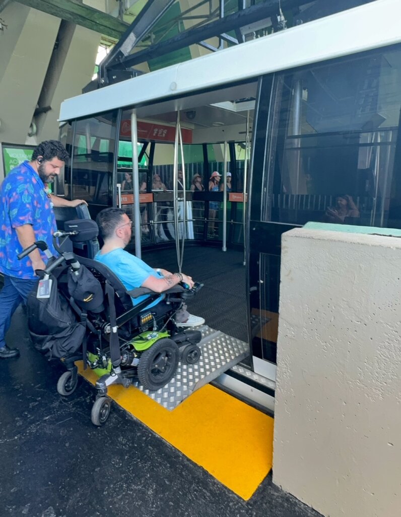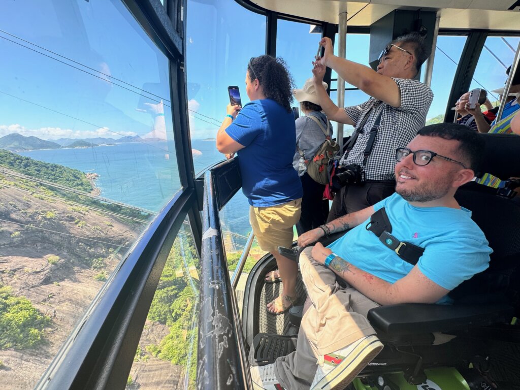 Wheelchair accessibility at Sugarloaf Mountain is wonderful and you will not need to transfer out of your own wheelchair or ride an escalator to get to the top. Instead, you’ll take a couple different cable cars to the top and they are completely wheelchair accessible. The cable cars have ramps that bridge the gap between the station platform and the cable car, so it was a seamless process for me to get on the cable cars.