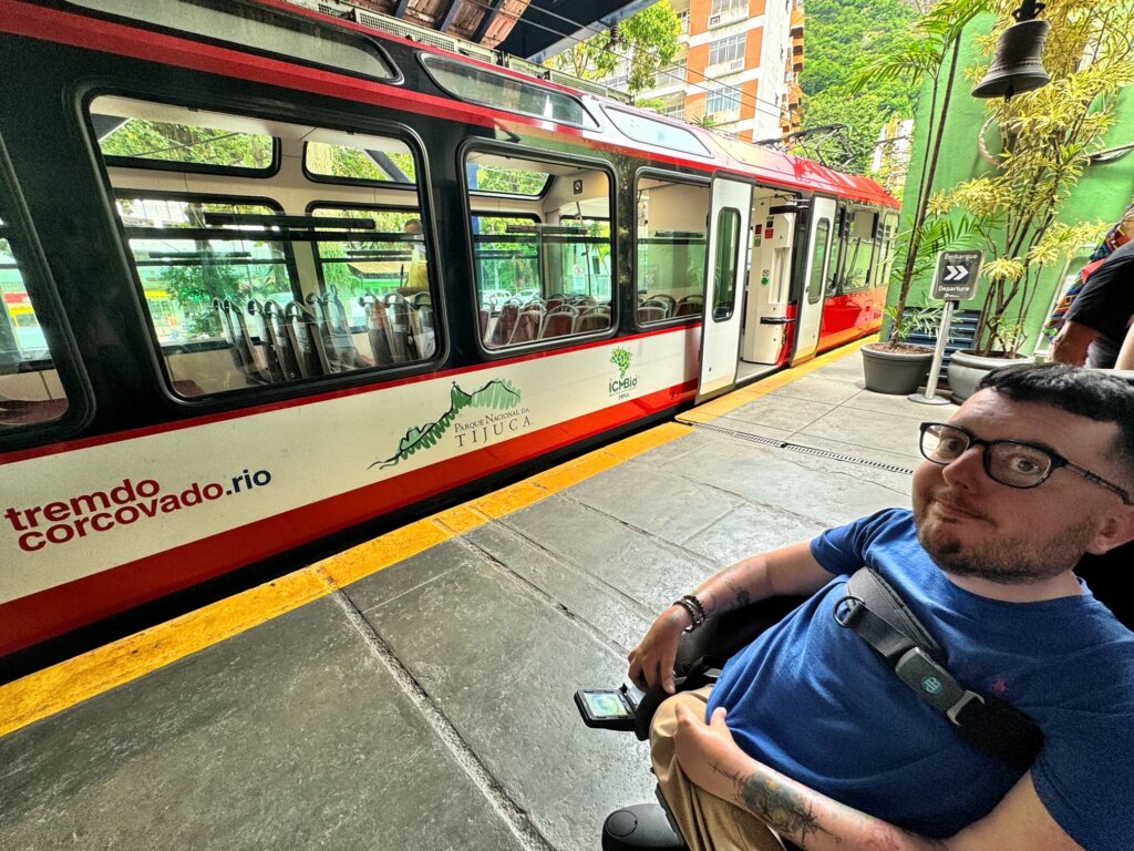 To get to Christ the Redeemer, you first need to make your way to the top of Corcovado Mountain. You can do this a few different ways, but the easiest option for wheelchair users is the Corcovado Train. The train is wheelchair accessible thanks to a portable ramp that the train station provides, so I was able to easily get onboard in my powered wheelchair. During the 20 minute train ride to the top, you’ll go through Tijuca National Park, which is beautiful.