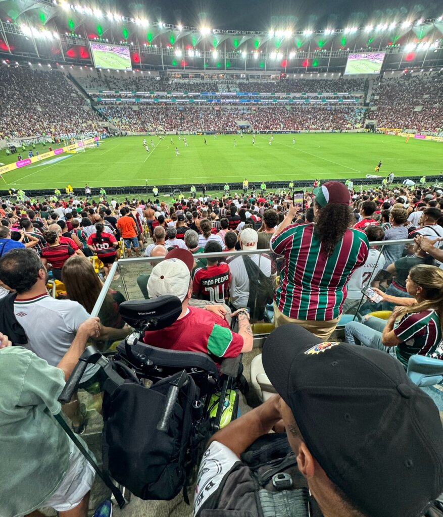 Rio Accessible Tour arranged our wheelchair accessible tickets for the game and our guide, Ursula, attended the game with us. Ursula is a superfan of Fluminense, so we all decided to wear Fluminense apparel and cheer on the team. Flamengo ended up winning the game, but we had the best time watching the game for a few hours.