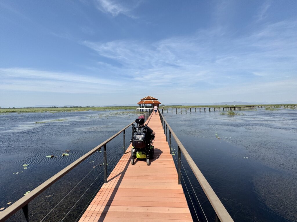 Honestly, this was one of the most accessible nature walks I’ve been on. If you’re looking for a beautiful and easily wheelchair accessible experience, this is the place. I just rolled along, enjoyed the views, and had a fantastic time for an hour or so. As you can see from the photos, the Bueng Bua Boardwalk is definitely a must-visit while you’re in Hua Hin.