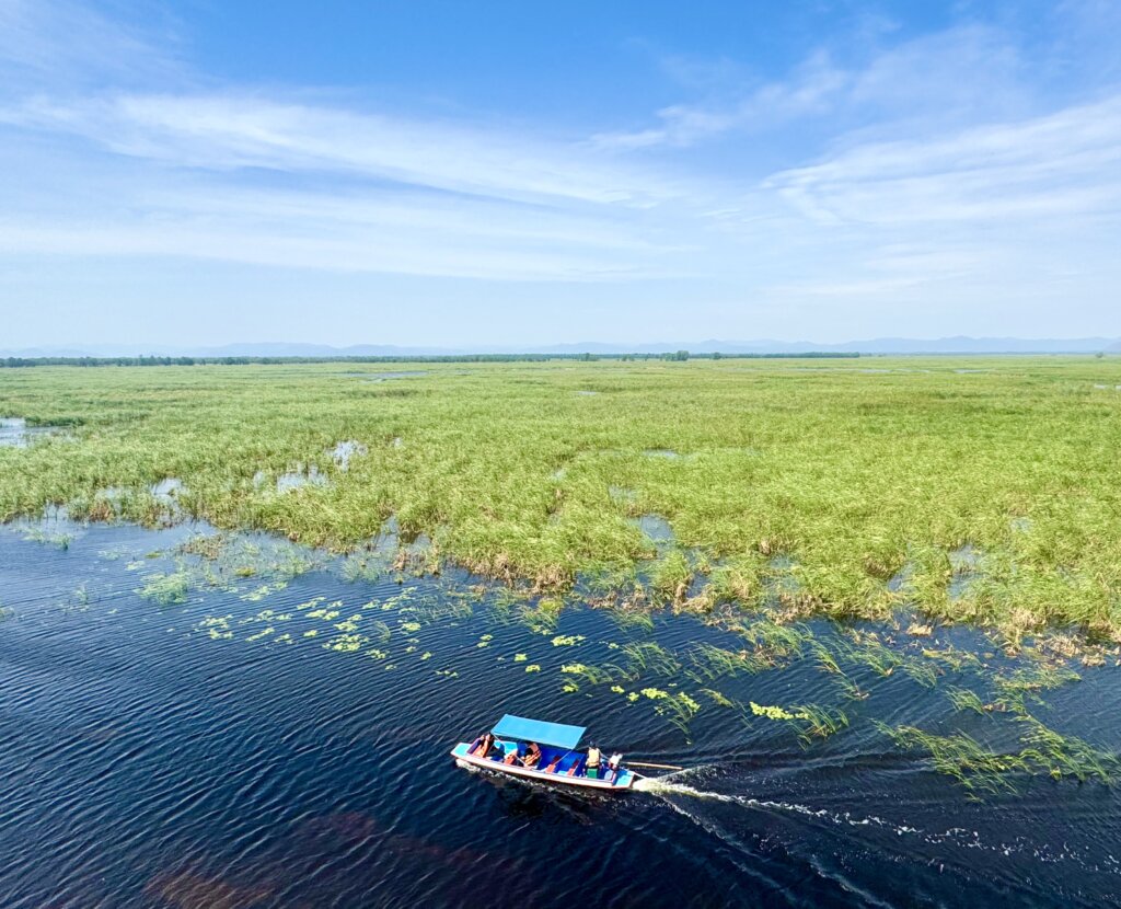 Imagine that you’re rolling along a smooth, wooden boardwalk, and on both sides of you, there is an incredible expanse of wetlands. Bueng Bua is a vast, shallow marsh, filled with gorgeous lotus plants and you might spot herons or egrets wading through the water. It’s an incredibly serene and peaceful landscape, and a real treat for the senses.