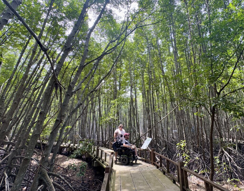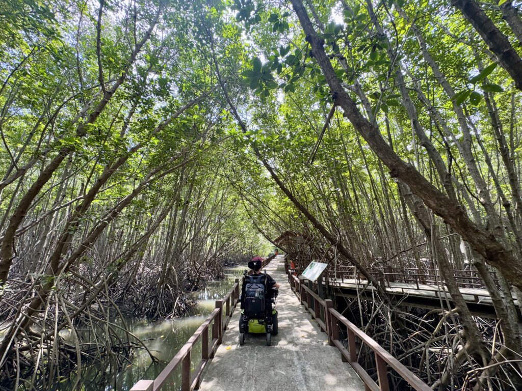 The Siri Nat Rachini Mangrove Forest is known for its paths that wind through the mangrove forest. Luckily, the paths were impeccably maintained and the smooth surface made navigating in my wheelchair an absolute breeze. It was immediately apparent that accessibility was a priority here, which was so refreshing.